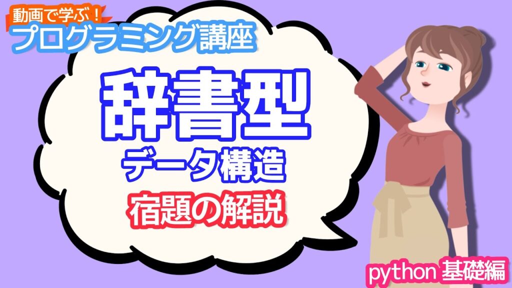 【python入門】辞書型 データ構造の宿題の解説【動画で学ぶプログラミング講座】 | Pythonちゃん
