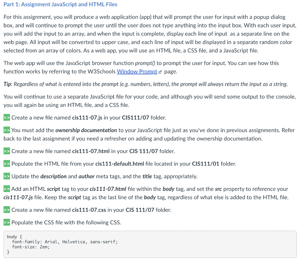 Solved Part 1: Assignment JavaScript and HTML Files For this | Chegg.com