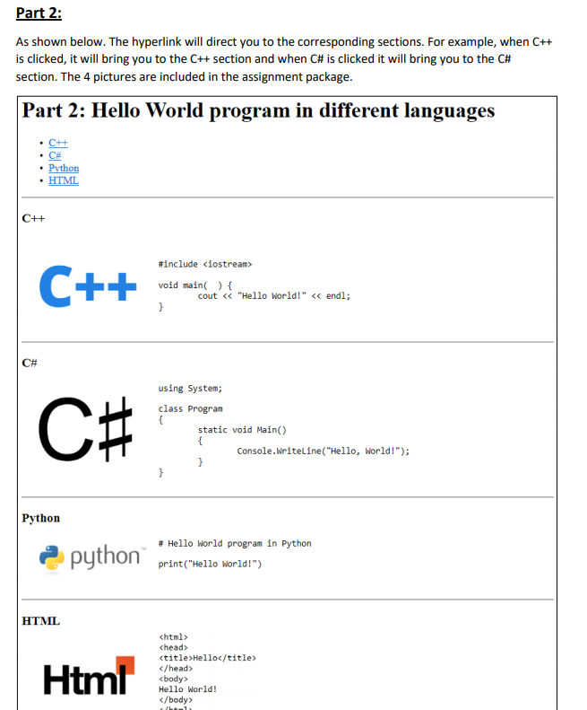 Solved HTML This part of the assignment requires minimal | Chegg.com