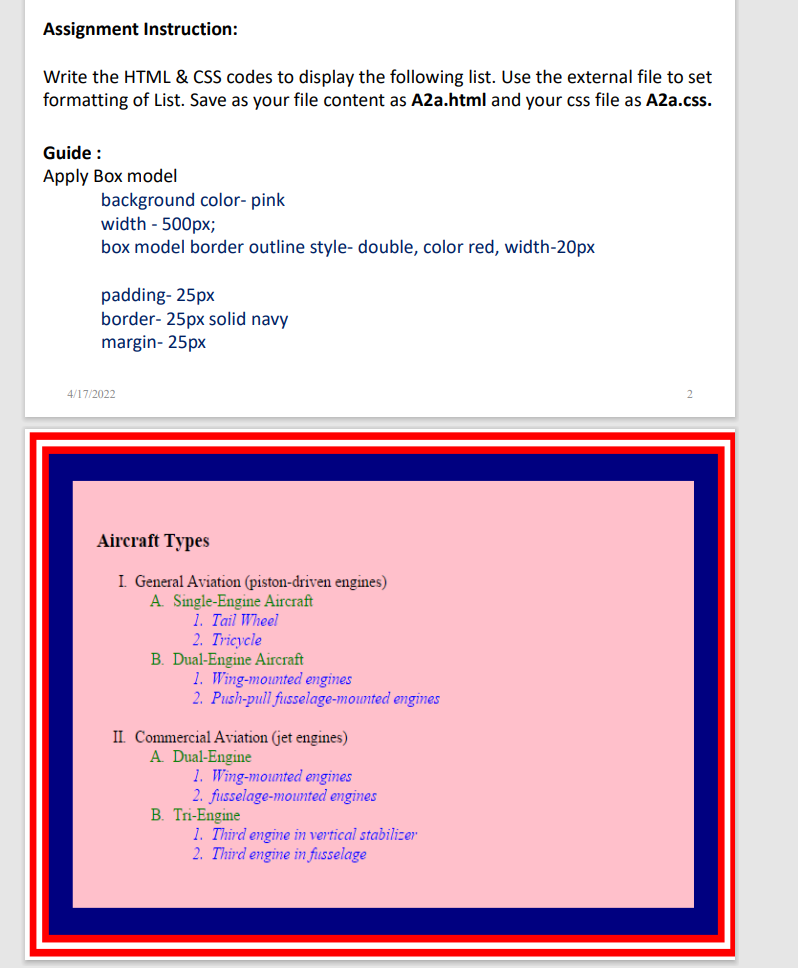 Solved Assignment Instruction: Write the HTML & CSS codes to | Chegg.com