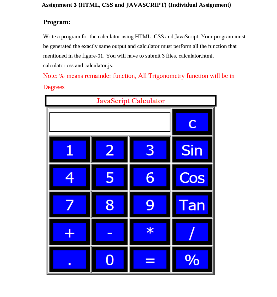 Solved Assignment 3 (HTML, CSS and JAVASCRIPT) Marks: 10 | Chegg.com