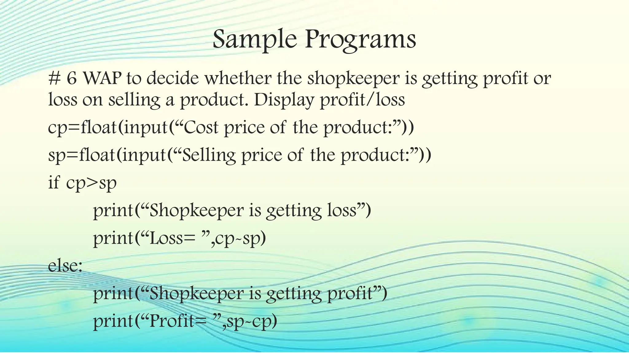 Python Programs| To Calculate Profit or Loss for given Selling and Cost ...