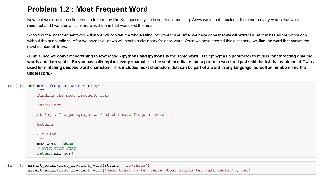 Solved Problem 1.2 : Most Frequent Word Now that was one | Chegg.com