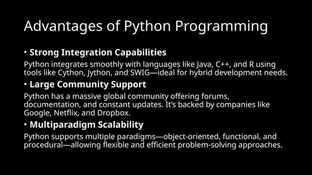 PPT - Benefits & features of python |Advantages & disadvantages of ...