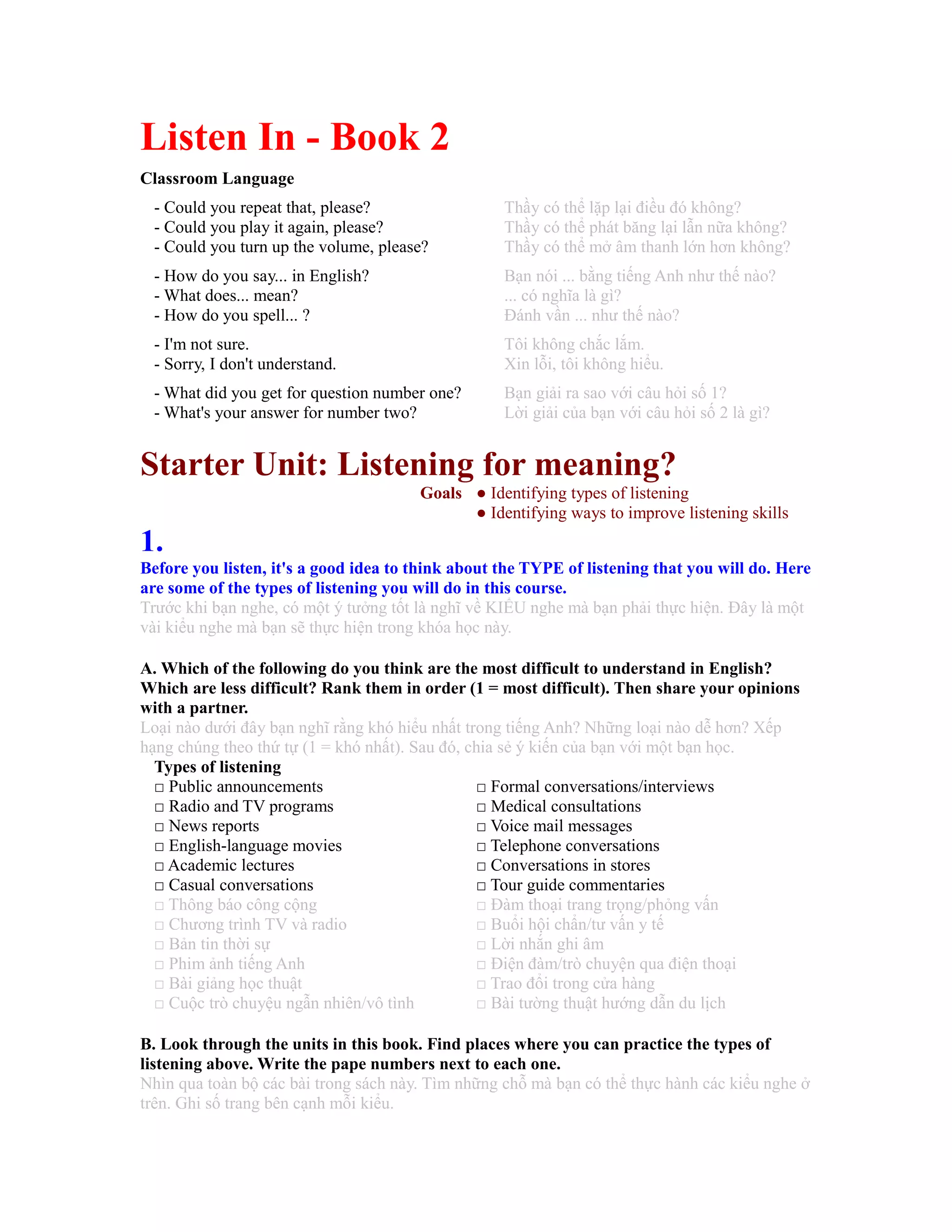 Unit 2-Listening 1 Activity A, B Page 30 | PDF