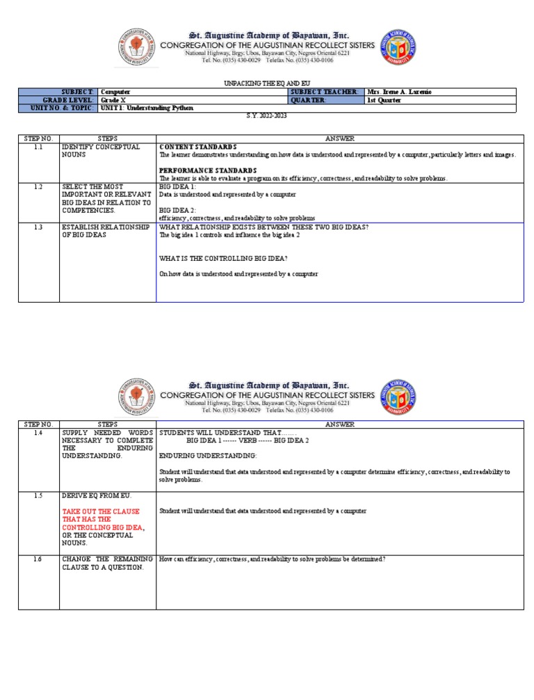 Unit 1 Step 1 Unpacking The Eu and Eq | PDF | Clause | Data
