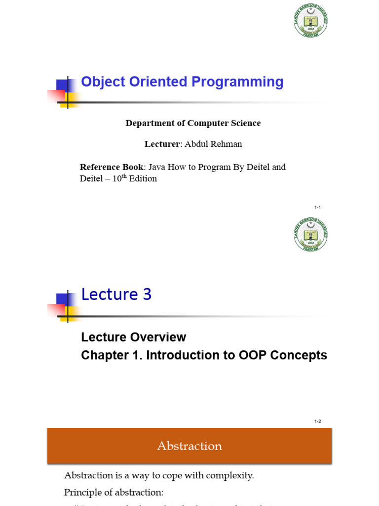 Lecture 3 - OOP Concepts | PDF | Object Oriented Programming | Abstraction