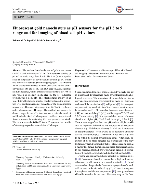 Based on this image's title: “pH-Sensitive gold nanoclusters: preparation and analytical applications ...”