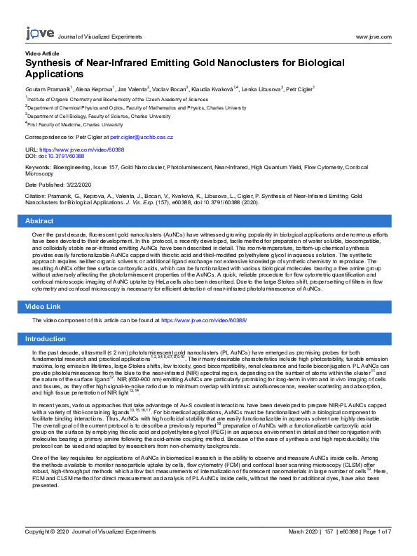 (PDF) Synthesis of Near-Infrared Emitting Gold Nanoclusters for ...