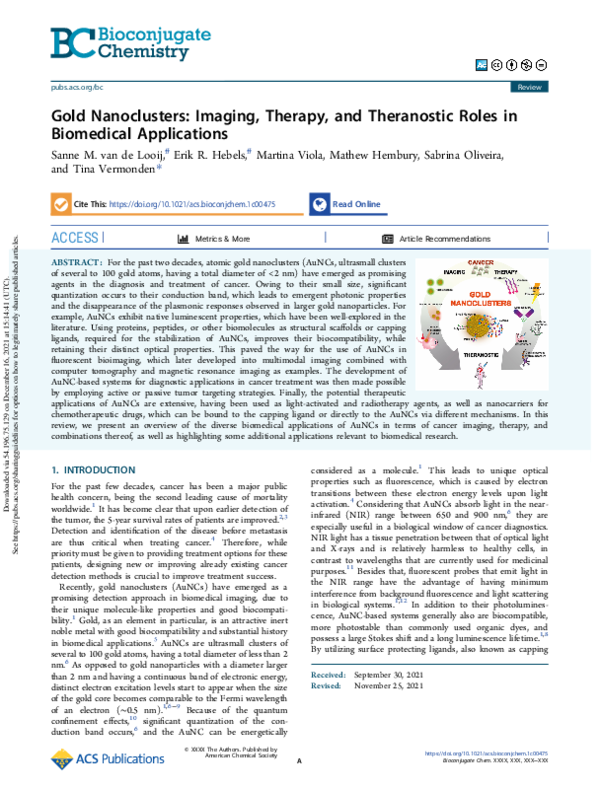 (PDF) Biomedical Applications for Gold Nanoclusters: Recent ...