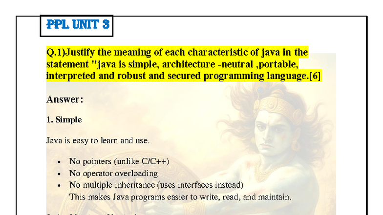 PPL UNIT 3 - Characteristics of Java: Simplicity, Portability, and More ...