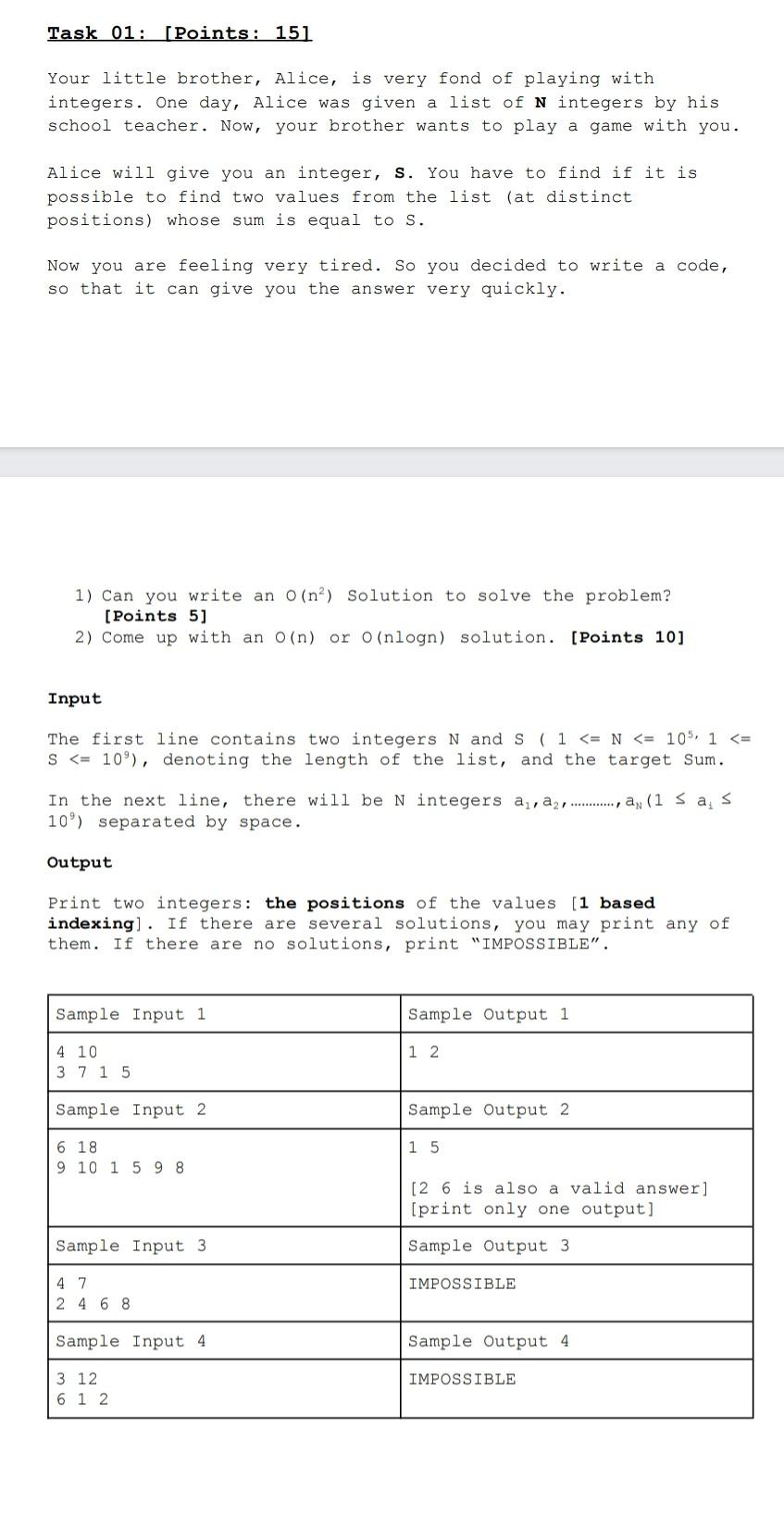 Solved Task 01: [Points: 15 ] Your little brother, Alice, is | Chegg.com