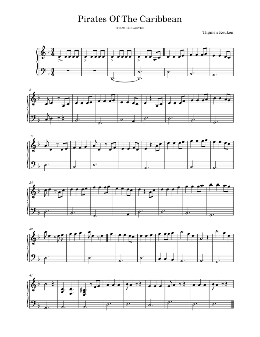 Pirates of the Caribbean Score Sheet music for Piano (Solo) | Musescore.com