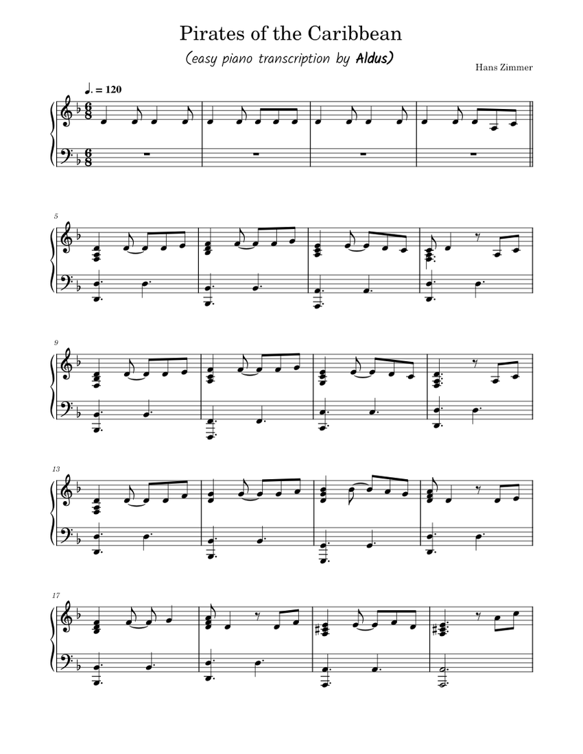 Hans Zimmer-Pirates Of The Caribbean Medley Sheet Music pdf, -γγ€γ¬γΌγγ»γͺγ ...