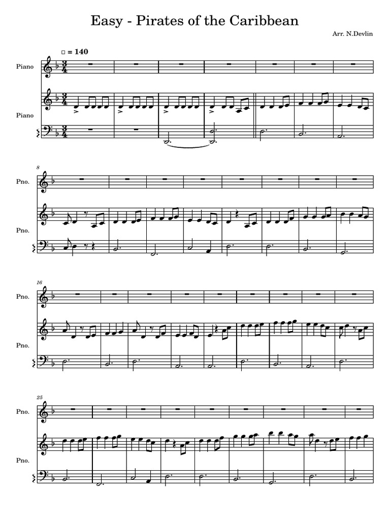 Pirates of the Caribbean (Piano Duet, 4-Hands β Intermediate Version ...