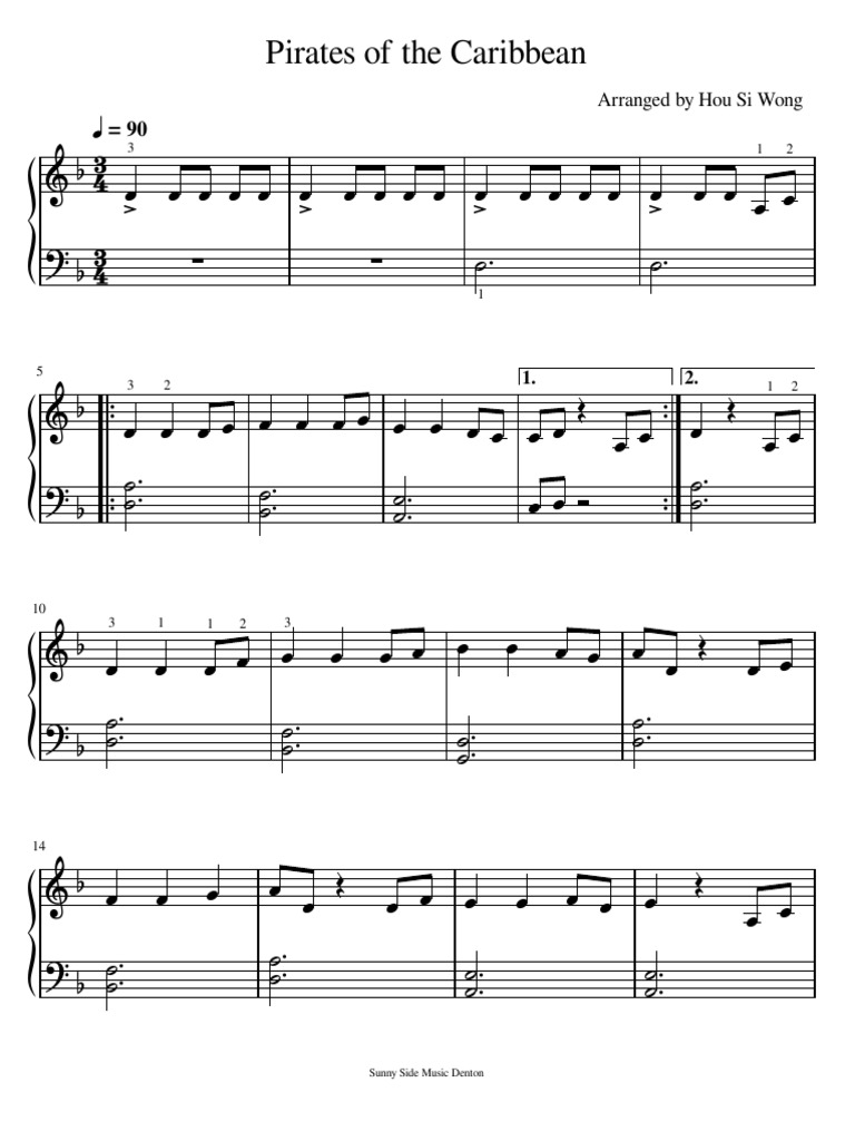 Pirates Of The Caribbean Piano Arrangement Pirates Of The Caribbean I