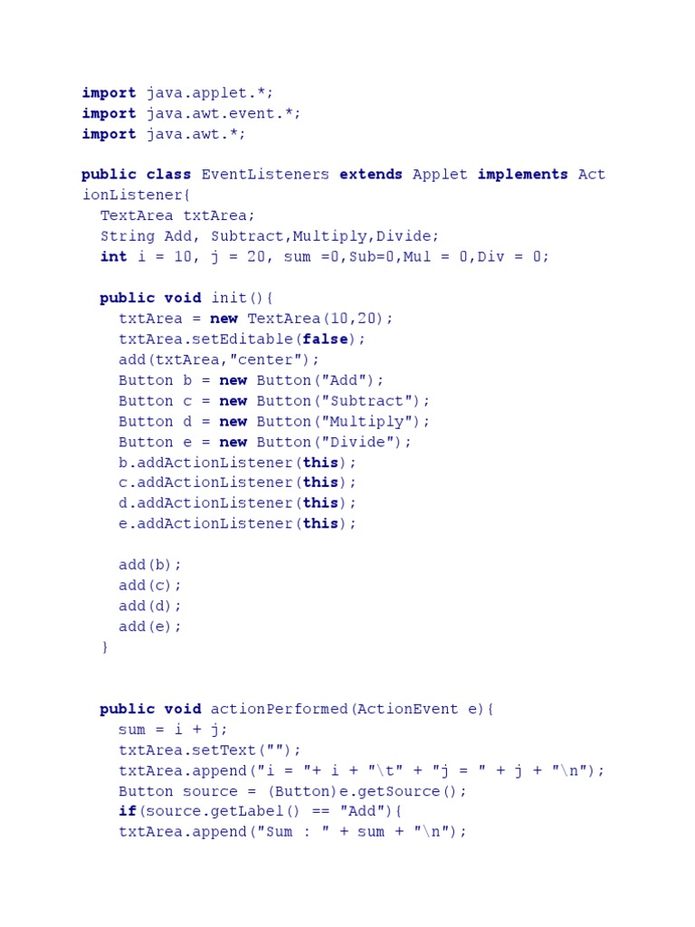 Java Applet Event Listeners Example | PDF