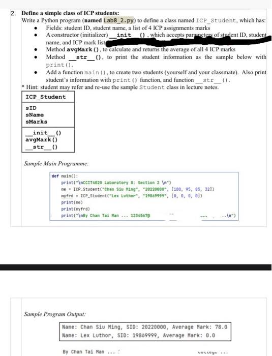 Solved Define a simple class of ICP students: Write a Python | Chegg.com
