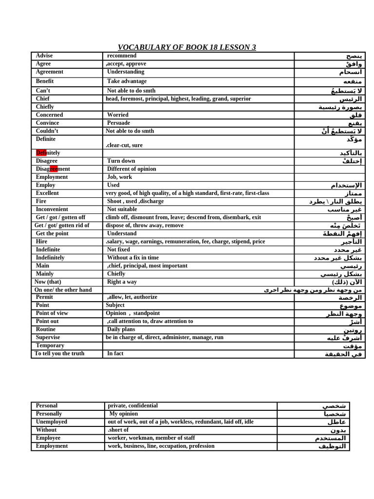 Vocabulary of Book 18 Lesson 3 | PDF | Employment | Business