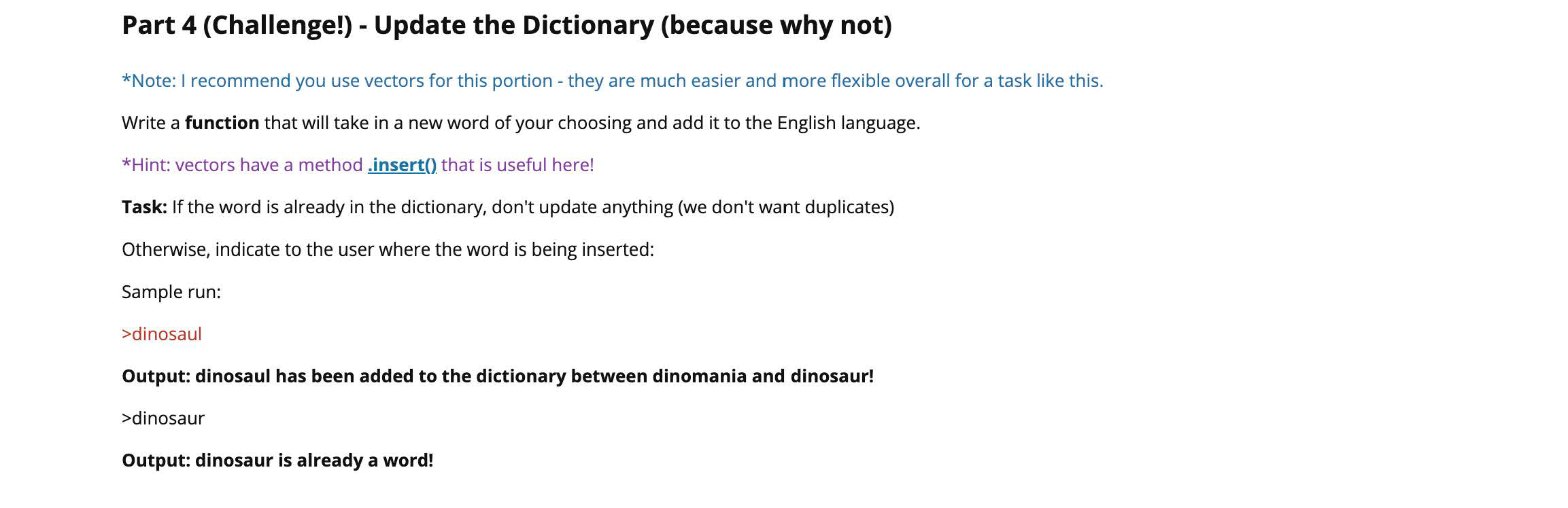 Solved Homework • Create a real dictionary for each word | Chegg.com