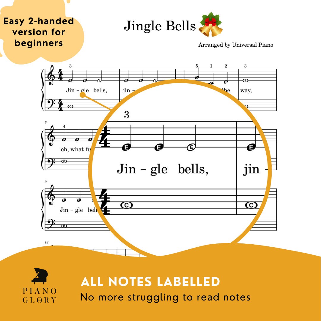 Jingle Bells Piano Christmas Sheet Music for Beginners - Etsy