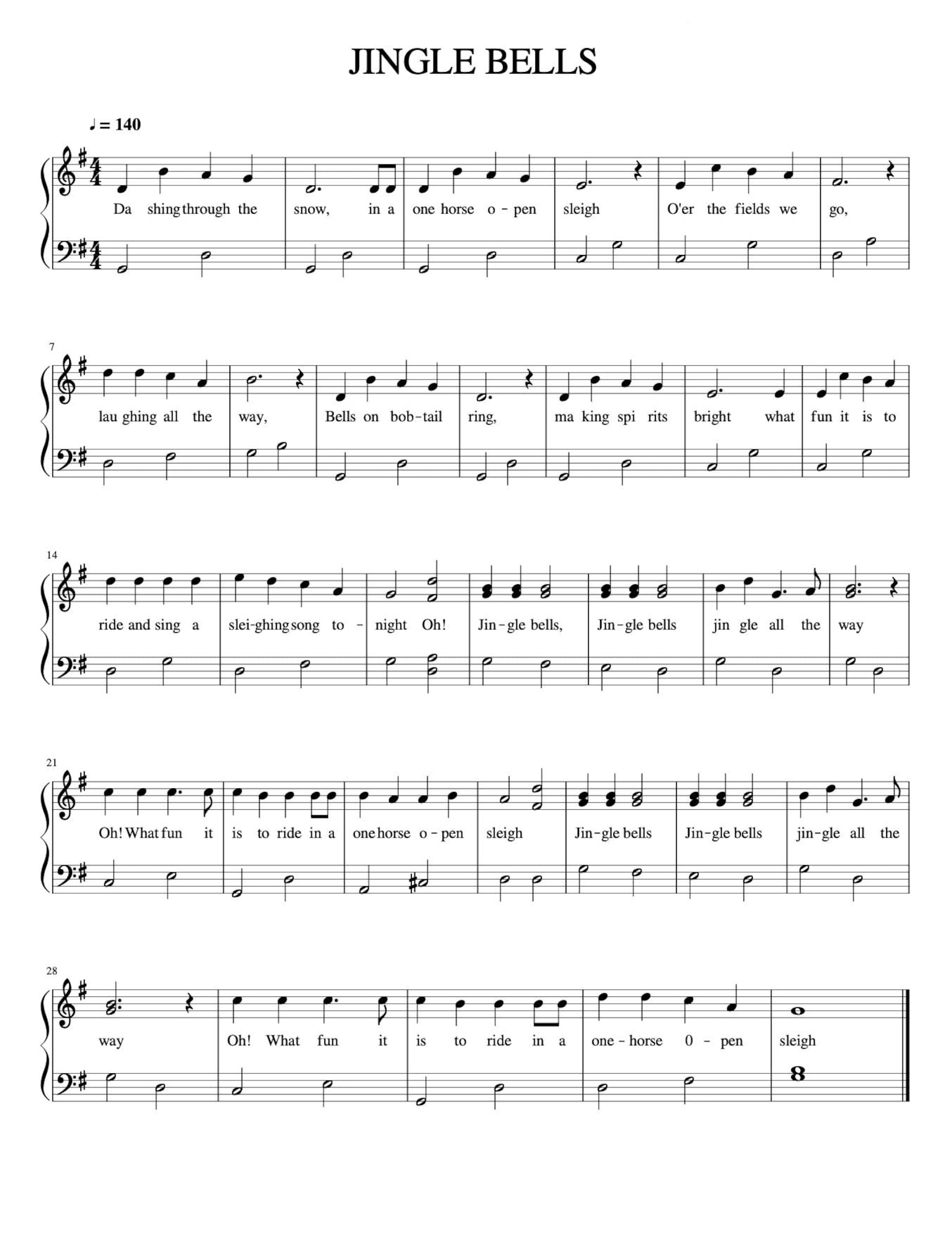 Jingle Bells Printable Sheet Music - Free Printable Download