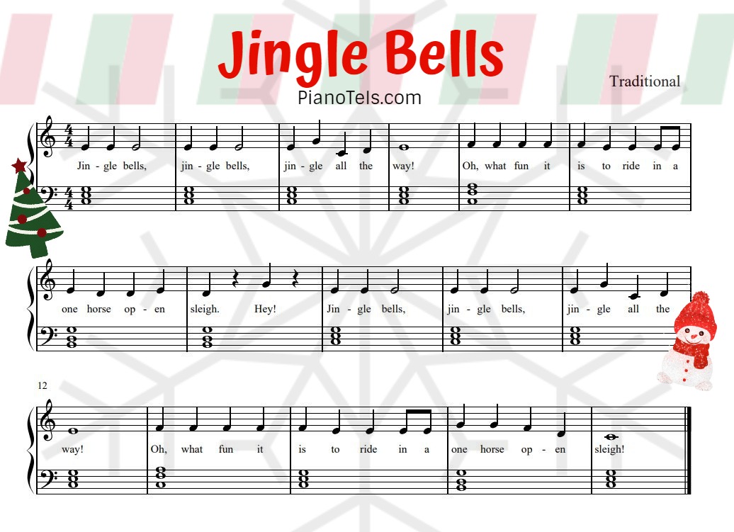 Jingle Bells | Free Easy Piano Sheet Music (Digital Print) | pianotels.com