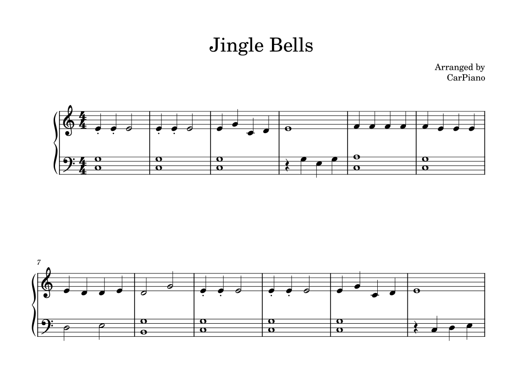 Jingle Bells (Easy Piano) (arr. CarPiano) by Traditional Sheet Music ...
