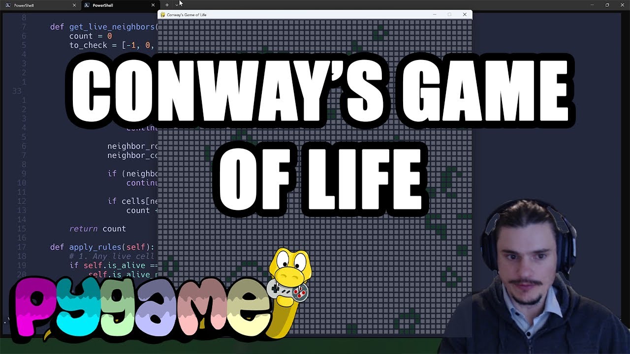 Based on this image's title: “How to make the Game of Life in Python using Pygame (Coding Challenge ...”