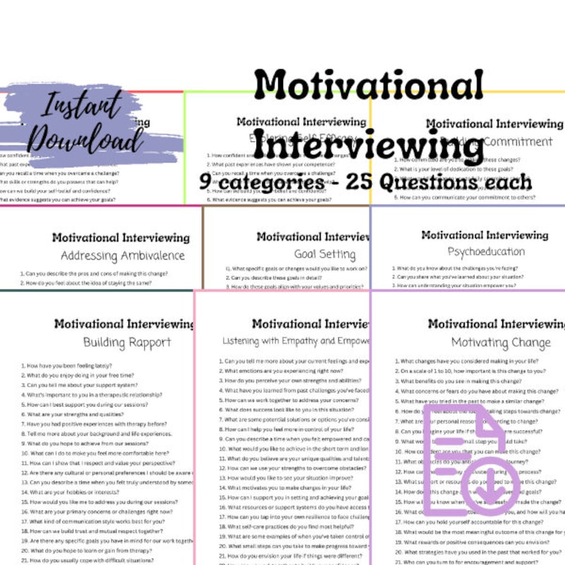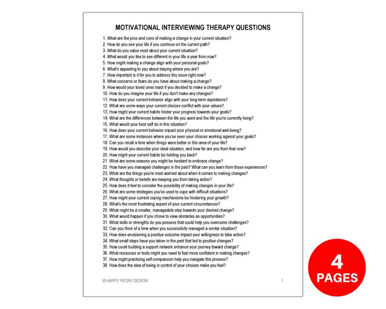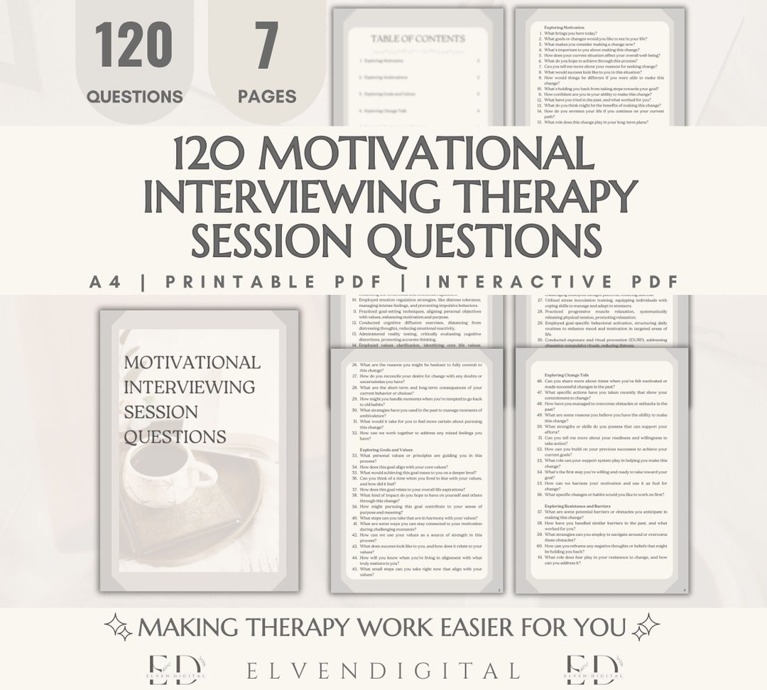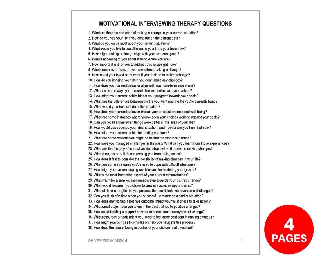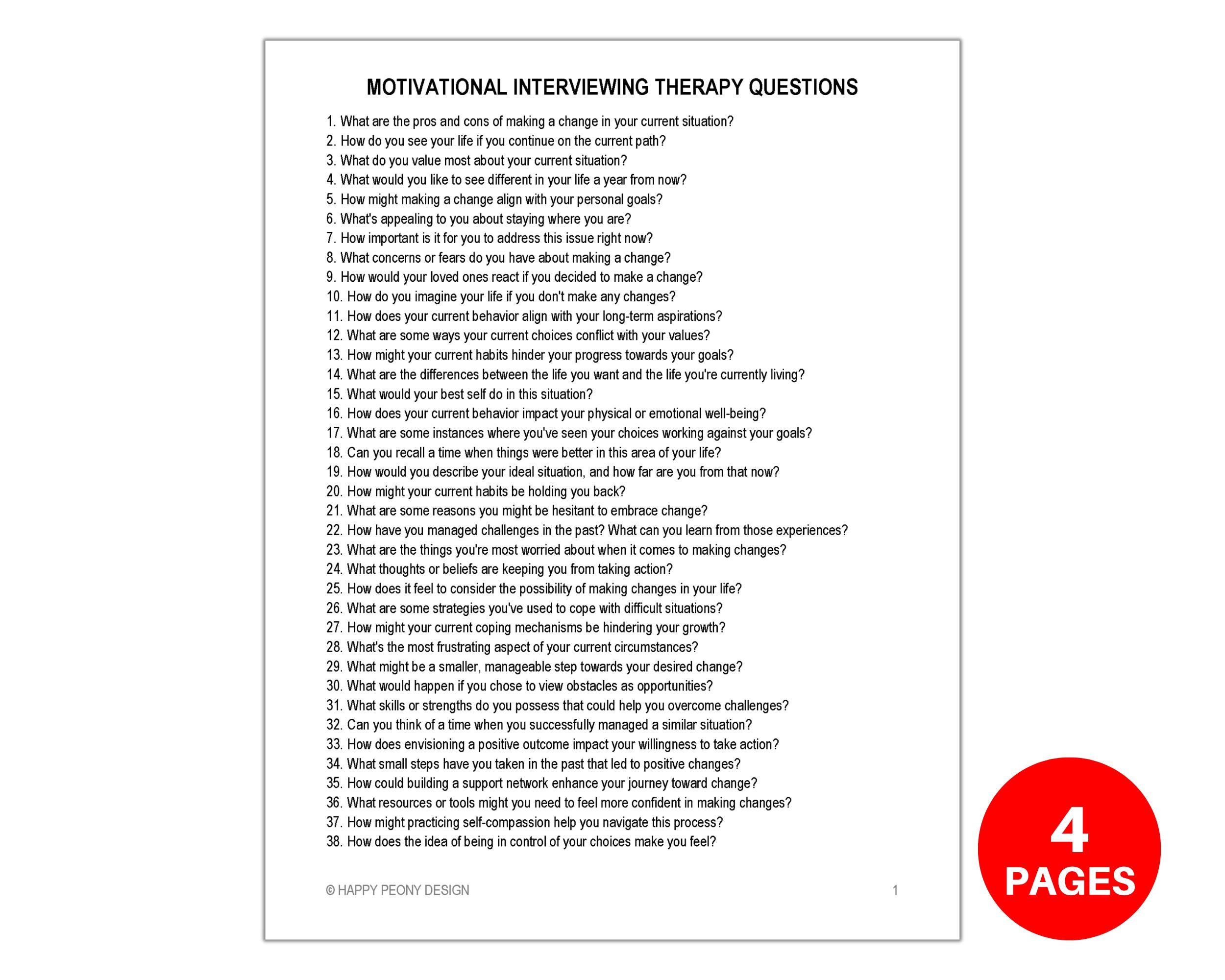 Motivational Interviewing Therapy Questions Counseling - Etsy