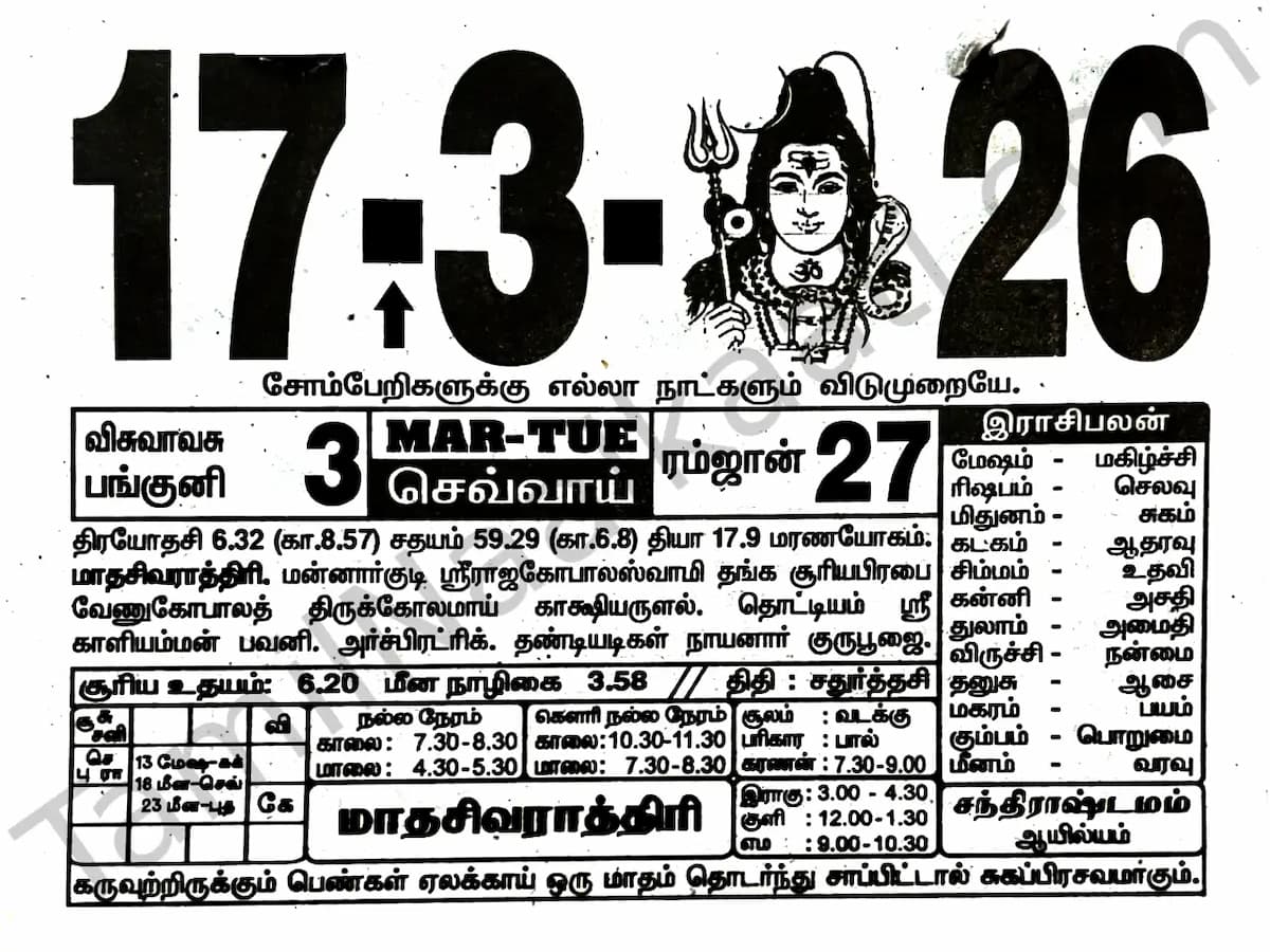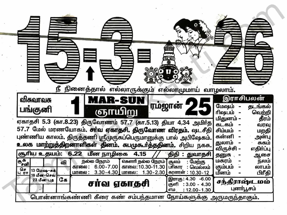 Tamil Calendar March 2026