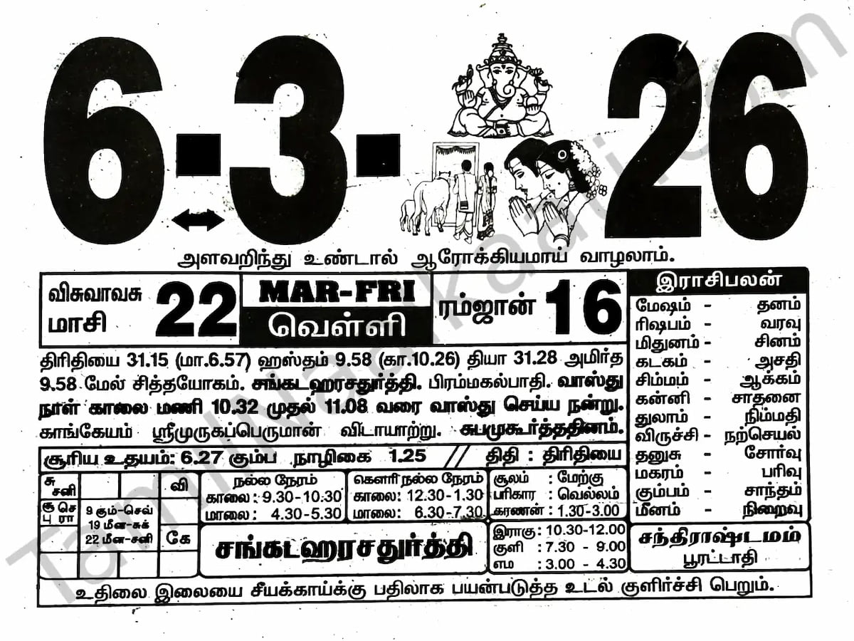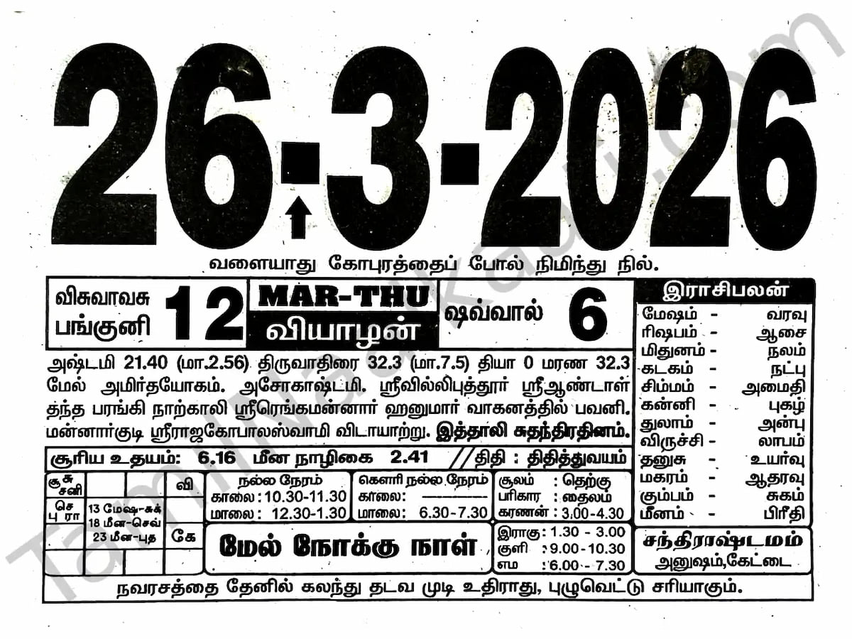 Tamil Daily Calendar 2026 March - 2026 Calendar Printable