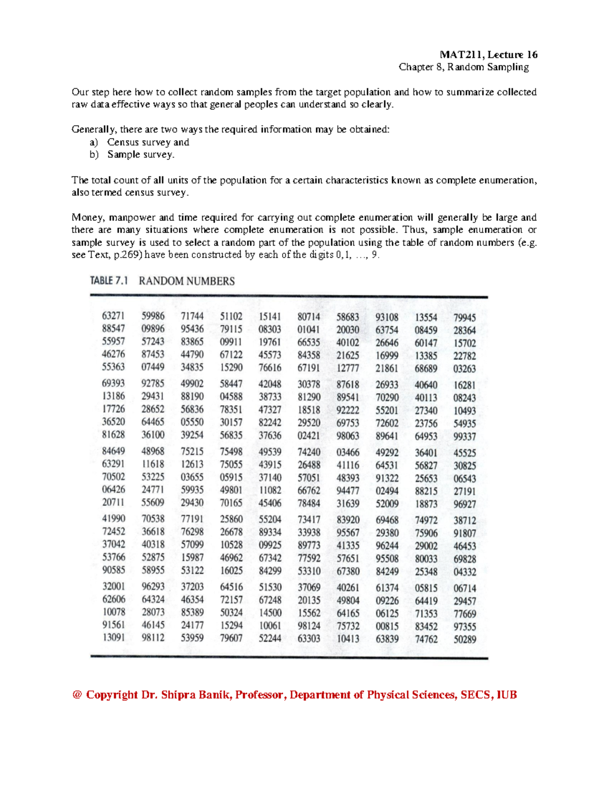 Lecture 14 Random Sampling - MAT211, Lecture 16 Chapter 8, Random ...