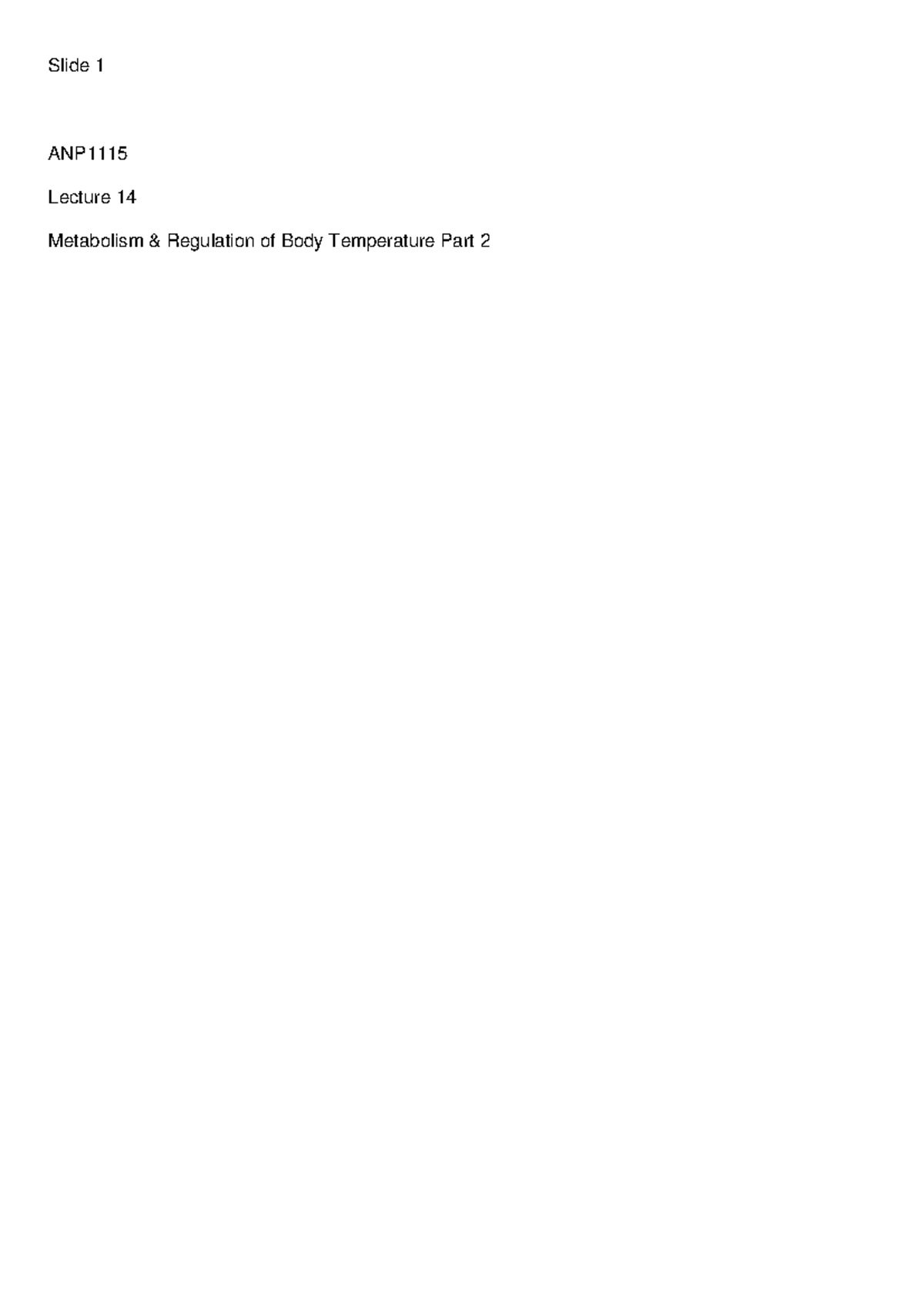 ANP1115 Lecture 14 Metabolism and Temperature - ANP Lecture Metabolism ...