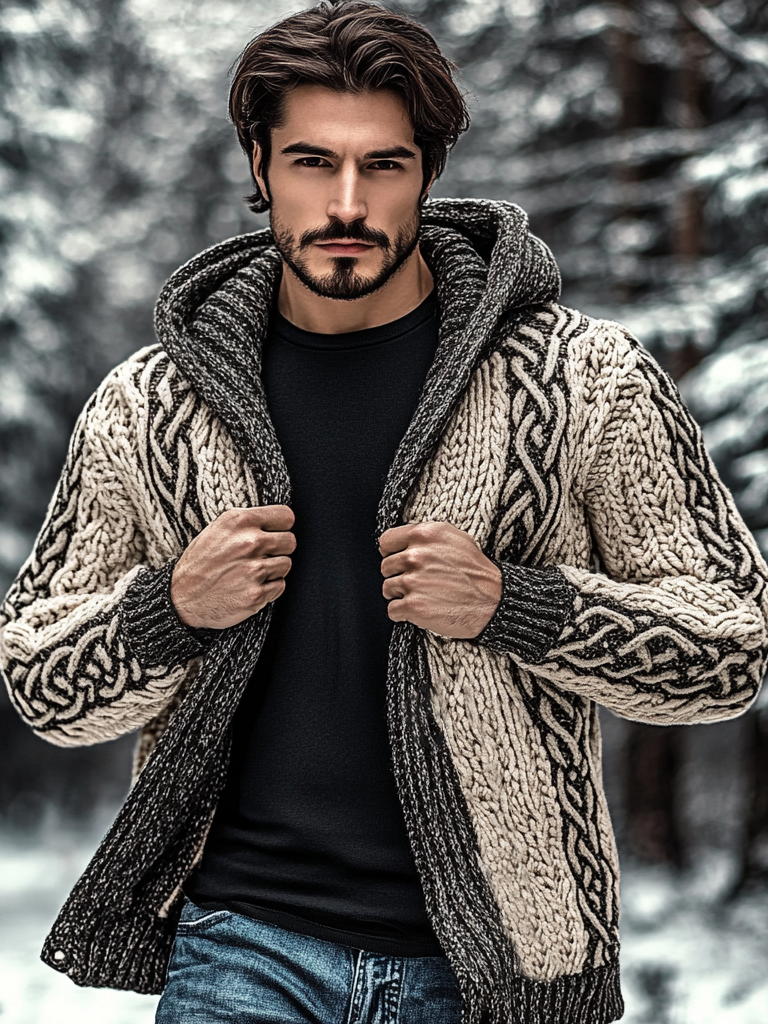 Men's Viking Inspired Celtic Jacquard Comfy Hooded Sweater