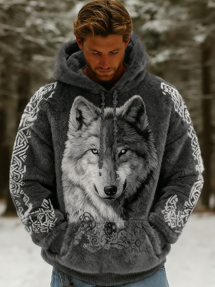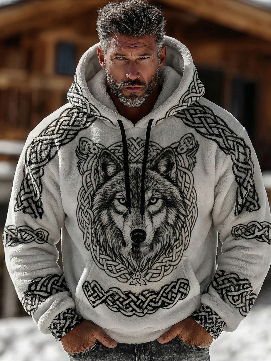 Men's Viking Wolf Celtic Art Flannel Cozy Warm Hoodie – deeove