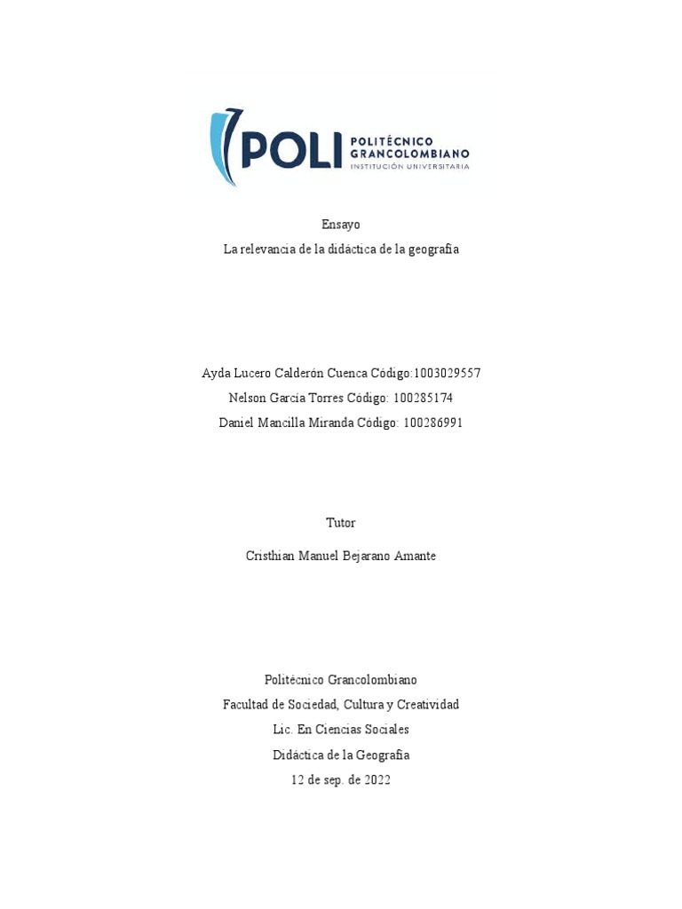 Semana 2 Geografia Resumen Lectura DIDACTICA de LA GEOGRAFIA - [PDF ...