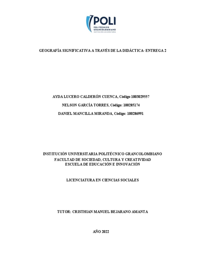 Entrega 1 Didactica de La Geografia | PDF | Enseñando | Geografía