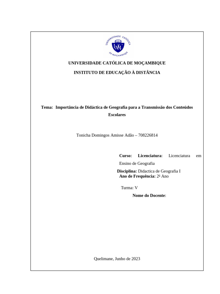 Didactica de Geog. II KKKK | PDF | Interdisciplinaridade | Geografia