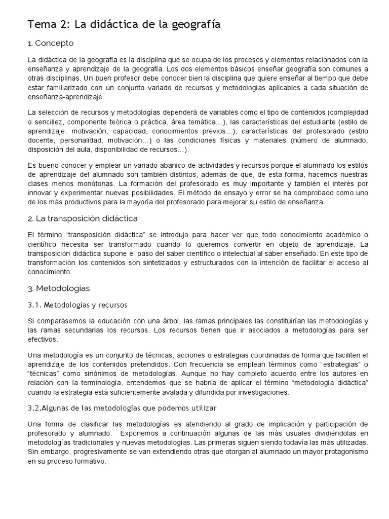 Tema 2 La Didáctica de La Geografía | PDF | Método de enseñanza ...