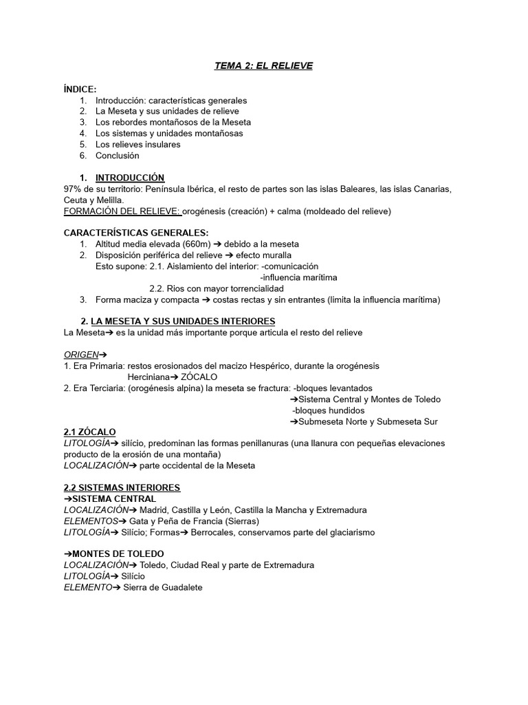 Tema 2 Geografía | PDF | Montañas | Paisaje