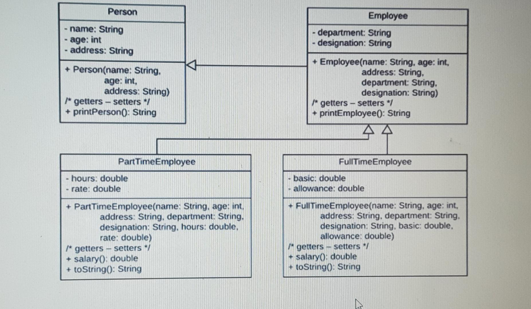Solved Person Employee - name: String - age: int - address: | Chegg.com