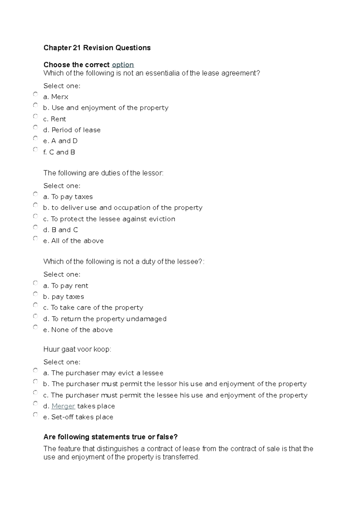 Chapter 21 Revision Questions - Chapter 21 Revision Questions Choose ...