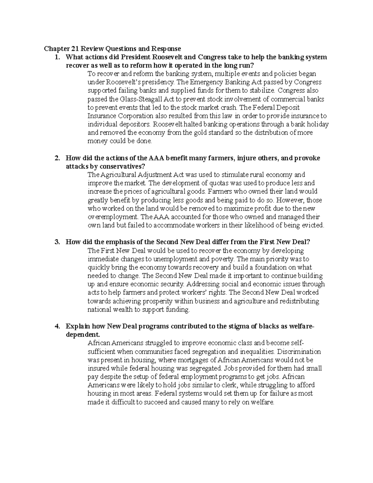 Chapter 21 Review: Questions & Responses on New Deal Policies - Studocu