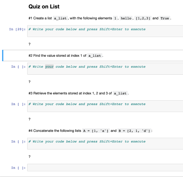 Solved #1 Create a list a_list , with the following elements | Chegg.com