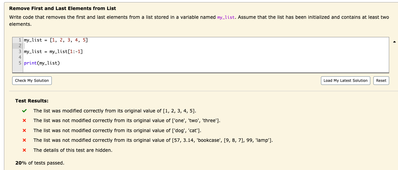 Solved Remove First and Last Elements from List Write code | Chegg.com