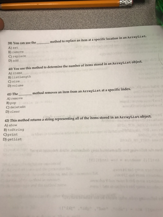 Solved 39) You can use the_ method to replace an item at a | Chegg.com