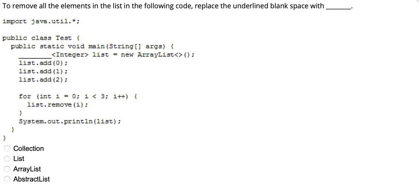 Solved To remove all the elements in the list in the | Chegg.com