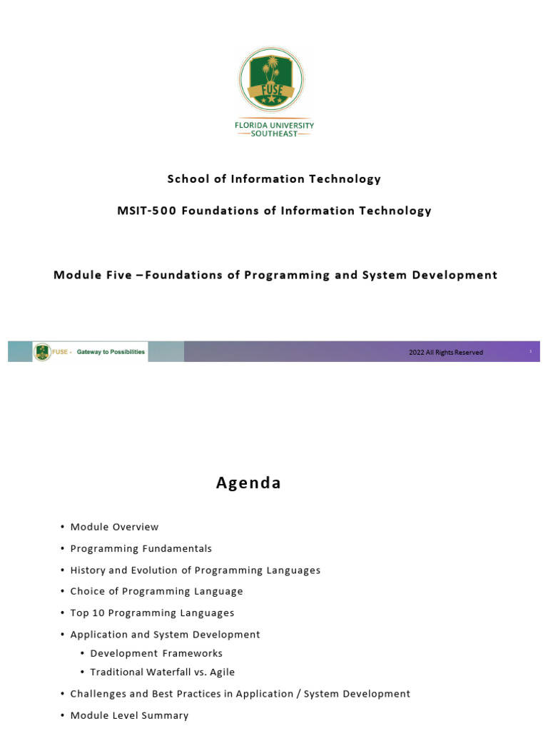 CIT 215 Intro to Programming Languages Course Overview and Modules ...