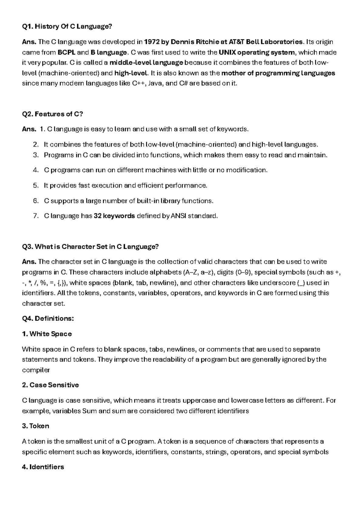 C Programming Language Overview and Key Concepts - Notes - Studocu